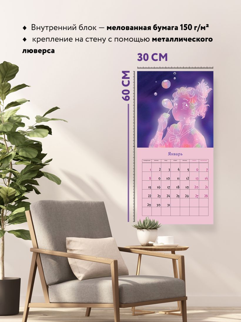 - Тип календаря — настенный перекидной.