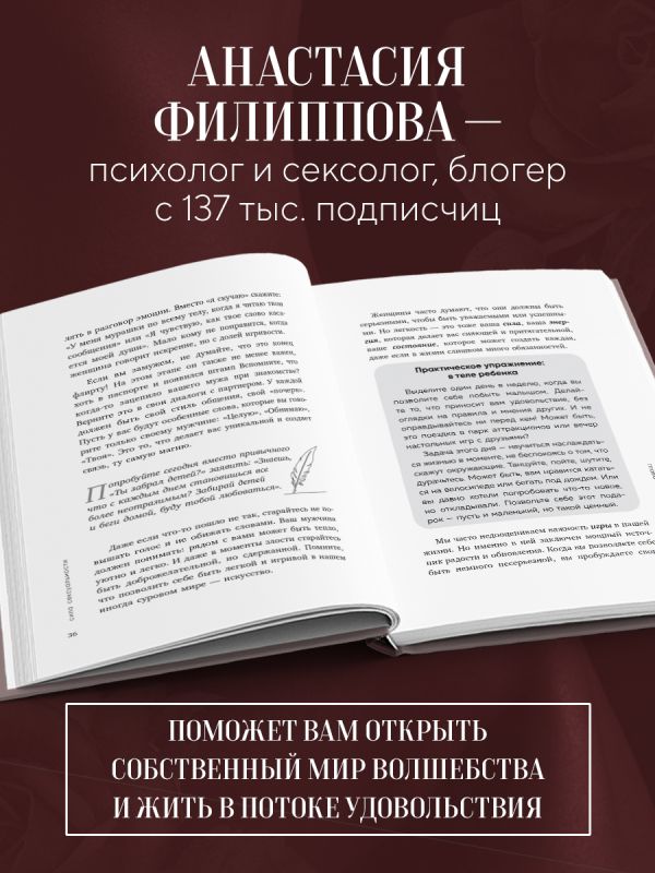 Автор Анастасия Филиппова, сексолог и клинический психолог, делится своим опытом и обучает практикам, которые помогут: