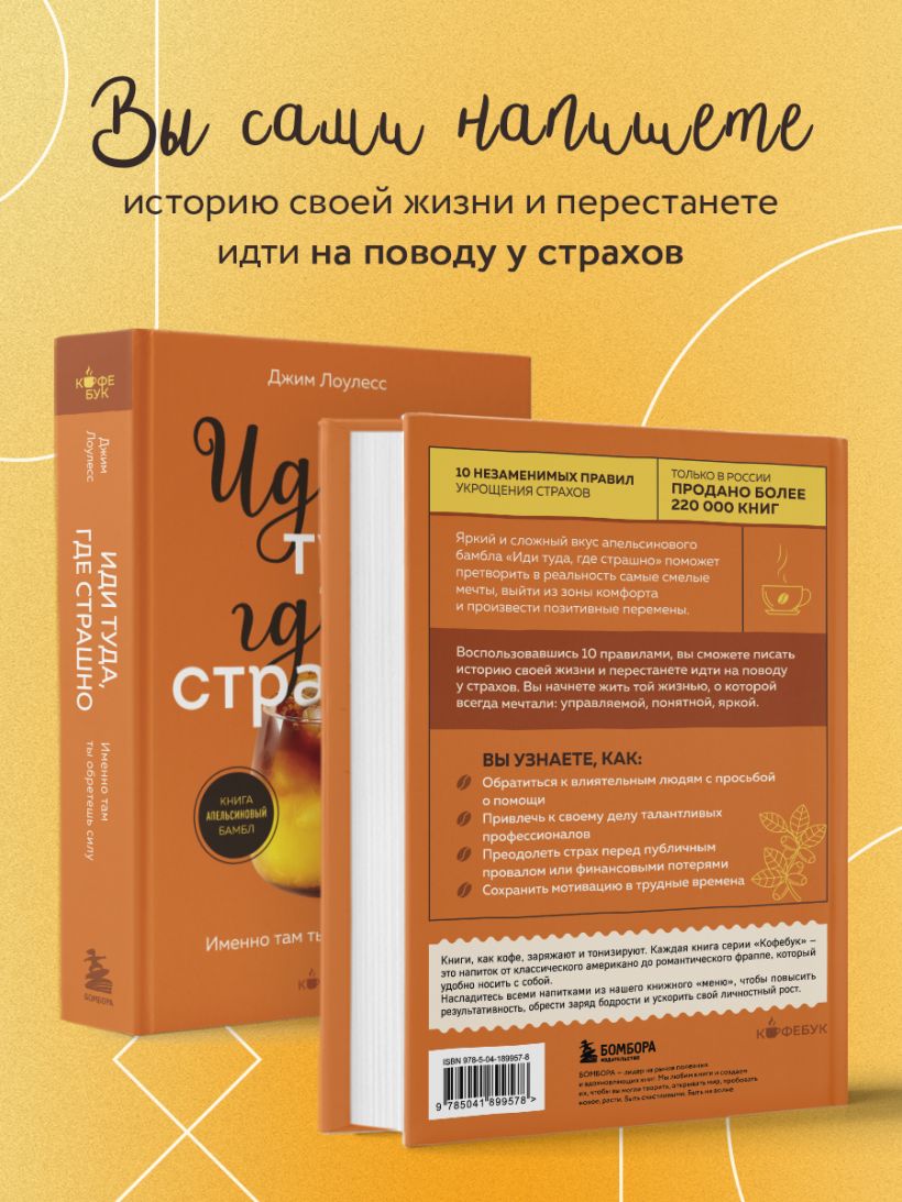 «"Иди туда, где страшно" — книга, которая вдохновляет двигаться вперёд вопреки страху перемен. 10 правил — квинтэссенция философии Джима Лоулесса. Если вы хотите сами писать историю своей жизни, эта книга — восхитительный помощник! Осознавайте, творите, дерзайте!»