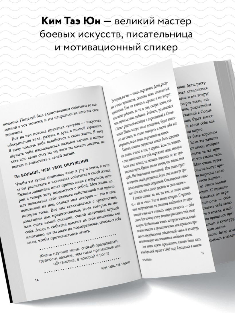 Доктор Тэюн Ким — великий мастер боевых искусств, писательница и мотивационный спикер. Она начала тренироваться в возрасте семи лет, нарушив тысячелетнюю традицию, запрещавшую девочкам в Южной Корее изучать боевые искусства. Несмотря ни на что, Тэюн Ким стала первым мастером боевых искусств в Корее и одной из величайших мастеров боевых искусств в мире. В качестве главного тренера она привела первую в истории американскую женскую команду по тхэквондо к золотой медали на международных играх в Сеуле и помогла проложить путь женщинам на соревнования по боевым искусствам в рамках Олимпийских игр. Доктор Ким основала собственную школу боевых искусств, нацеленную на преодоление препятствий во всех сферах жизни. Преподает в своей академии в заливе Сан-Франциско. Также основала и возглавила ведущую технологическую компанию в Кремниевой долине и получила множество наград за выдающиеся достижения в гуманитарной сфере.
