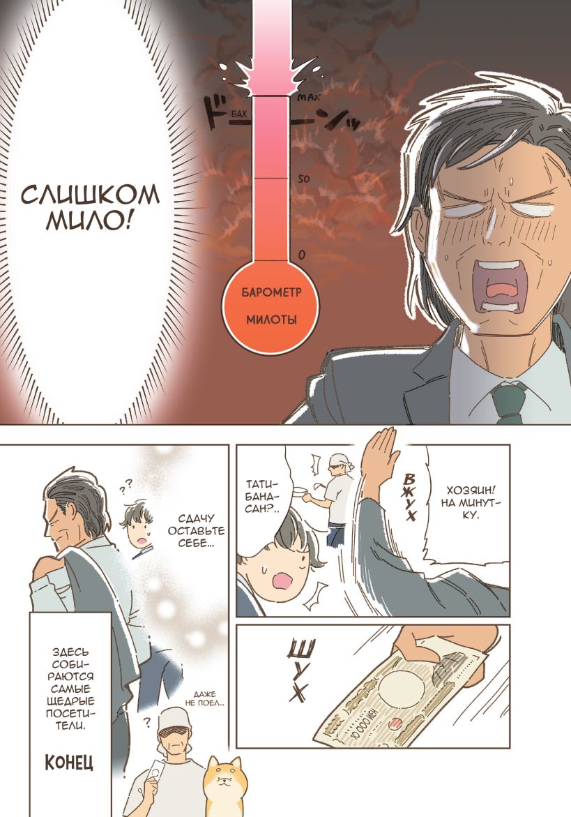 Это сборник забавных историй об упитанном пёсике-официанте, который больше всего на свете любит своего хозяина. И покушать. И работать в идзакае.