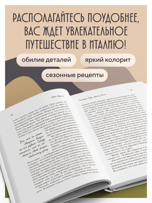 «Со страниц веет ароматами пряных трав и фруктов, слышны веселые голоса жителей Кортоны, стук каблуков по старинной брусчатке, звон колоколов. Останется приятное послевкусие и ощущение, что вы какое-то время прожили в Тоскане. Располагайтесь поудобнее, вас ждет увлекательное путешествие в Италию!» — Мила Ульченко, автор и создатель блога www.unarussainitalia.ru