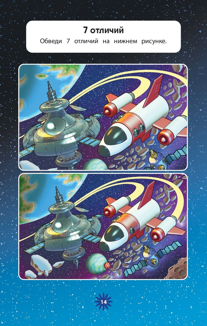 Блокнот «Космос» — это более 70 увлекательных заданий на логику, внимание и воображение для детей 5—7 лет. Найди отличия, пройди лабиринты, реши интересные загадки и раскрась картинки!