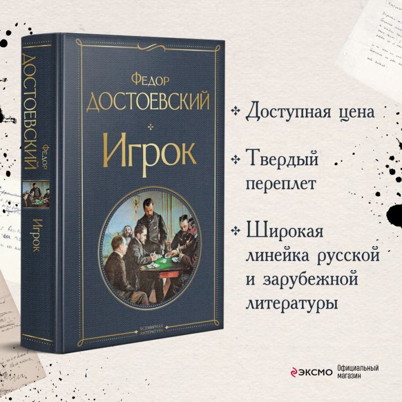 Азарт, пагубная страсть к игре, любовные коллизии вовлекают героев романа «Игрок» в безумный и нескончаемый водоворот событий, происходящих на модном курорте. Если вам интересна тема игры, то просто необходимо прочитать этот роман писателя, одержимого игрой.