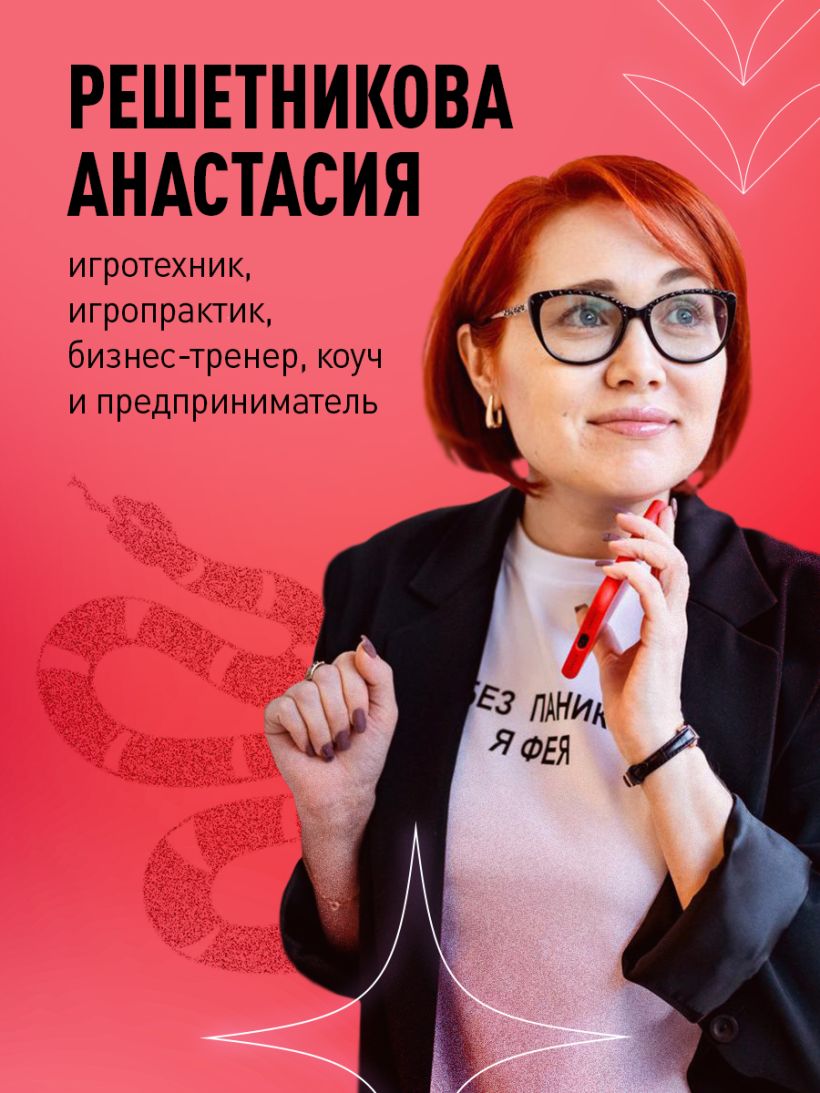 Анастасия Решетникова — игротехник, игропрактик, бизнес-тренер, коуч и предприниматель — уже более 10 лет меняет жизни людей с помощью игр. Автор создала 175 трансформационных и бизнес-игр и лично провела более 2000 игровых сессий. Когда-то ее жизнь точно так же вышла на принципиально новый уровень за два хода игры. И теперь