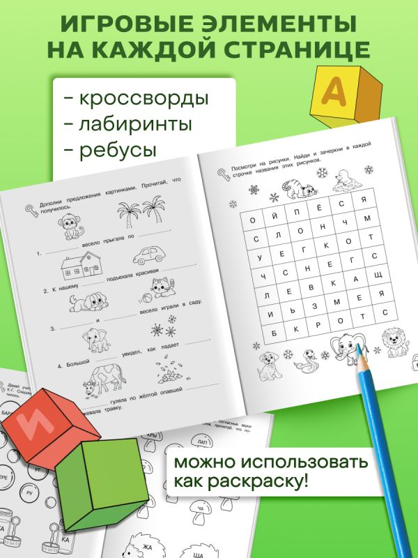 Интерактивная рабочая тетрадь, разработанная практикующим нейропсихологом, поможет активизировать умственные способности и превратить обучение в увлекательную игру. На каждой странице дошкольнику предстоит собирать слова из букв и слогов, разгадывать ребусы и шифры, прокладывать путь в лабиринтах, заполнять кроссворды, составлять предложения. Упражнения, собранные в книге, помогут потренировать слияние слогов, автоматизировать навыки чтения, повысить внимание, улучшить мелкую моторику и логическое мышление, а также поспособствуют расширению словарного запаса и пониманию смысла прочитанного.