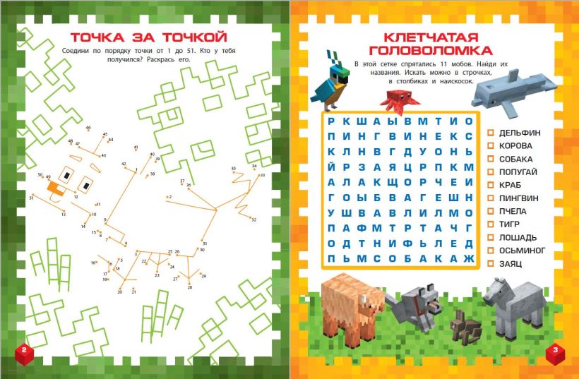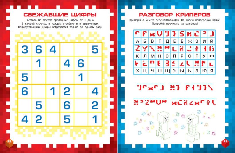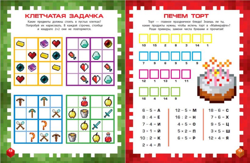 Прокачай свой мозг до крепких кубиков! Любимые игры из вселенной Minecraft теперь в цвете! Прими вызов кубического мира и подтверди звание храброго и хитрого воина!