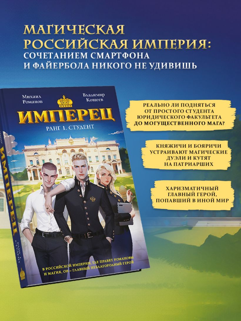 Российская империя под скипетром Романовых сильна, как никогда. Сочетанием смартфона и файербола никого не удивишь. Княжичи и бояричи гоняют на дорогих авто, устраивают магические дуэли и кутят на Патриках. И тут на юридическом факультете императорского университета появляется безродный выскочка с максимальным магическим резервом. Парень с глазами ветерана. Человек, привлекающий внимание аристократов, спецслужб… и красавиц. Имперец.