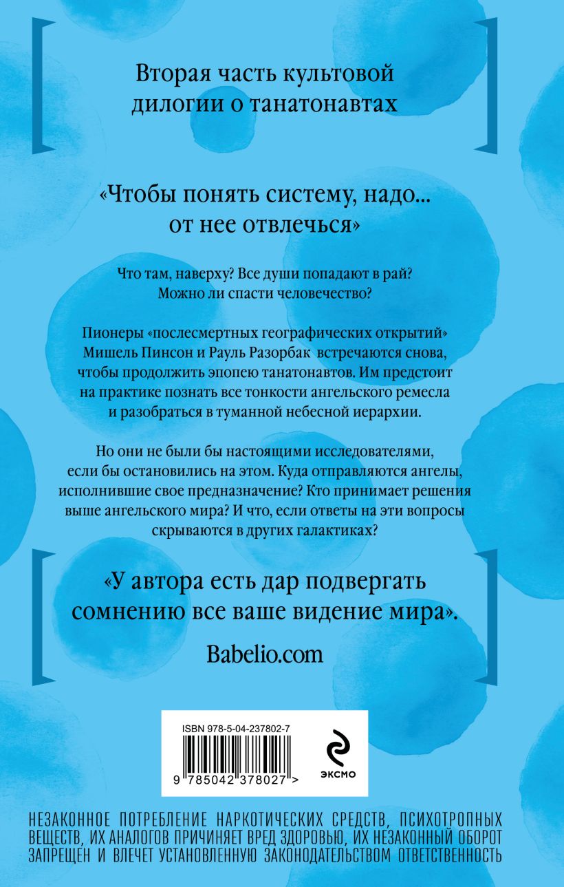 Пионеры «послесмертных географических открытий» Мишель Пинсон и Рауль Разорбак встречаются снова, чтобы продолжить эпопею танатонавтов. Им предстоит на практике познать все тонкости ангельского ремесла и разобраться в туманной небесной иерархии. Но они не были бы настоящими исследователями, если бы остановились на этом. Куда отправляются ангелы, исполнившие свое предназначение? Кто принимает решения выше ангельского мира? И что, если ответы на эти вопросы скрываются в других галактиках?