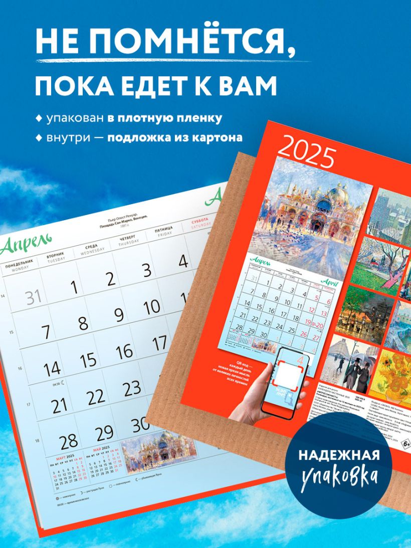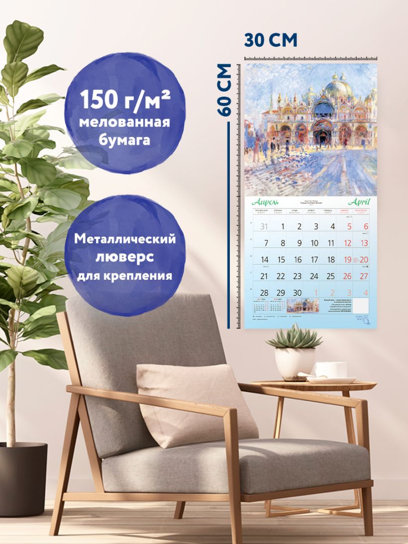 Практичный и эстетичный, этот календарь каждый месяц будет радовать вас. Прекрасные картины органично дополнят любой интерьер и помогут планировать время. В этом календаре представлены шедевры известных импрессионистов.