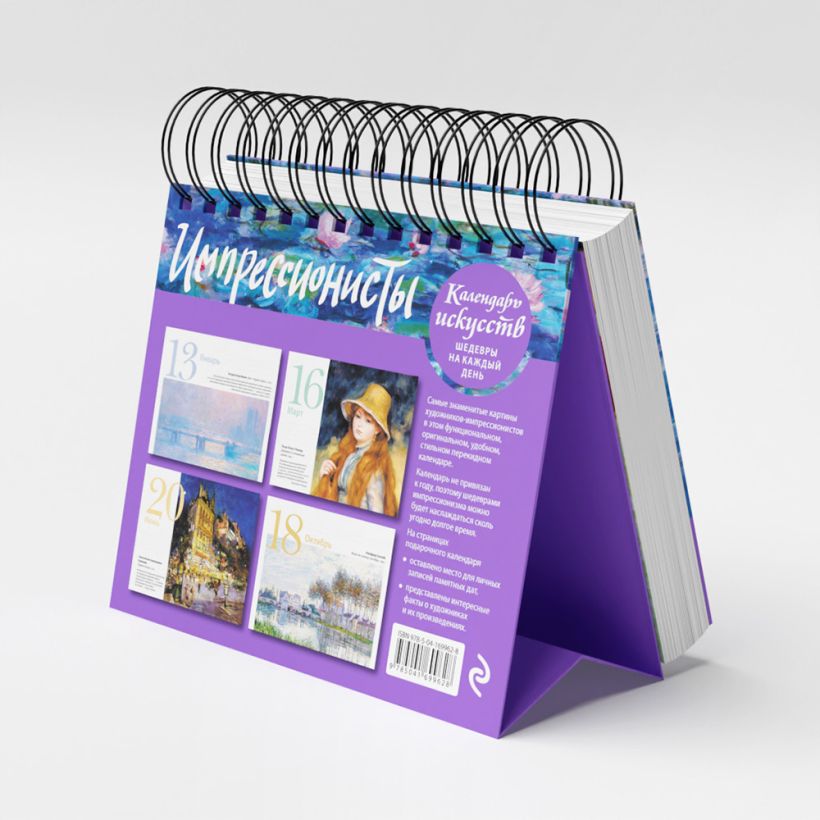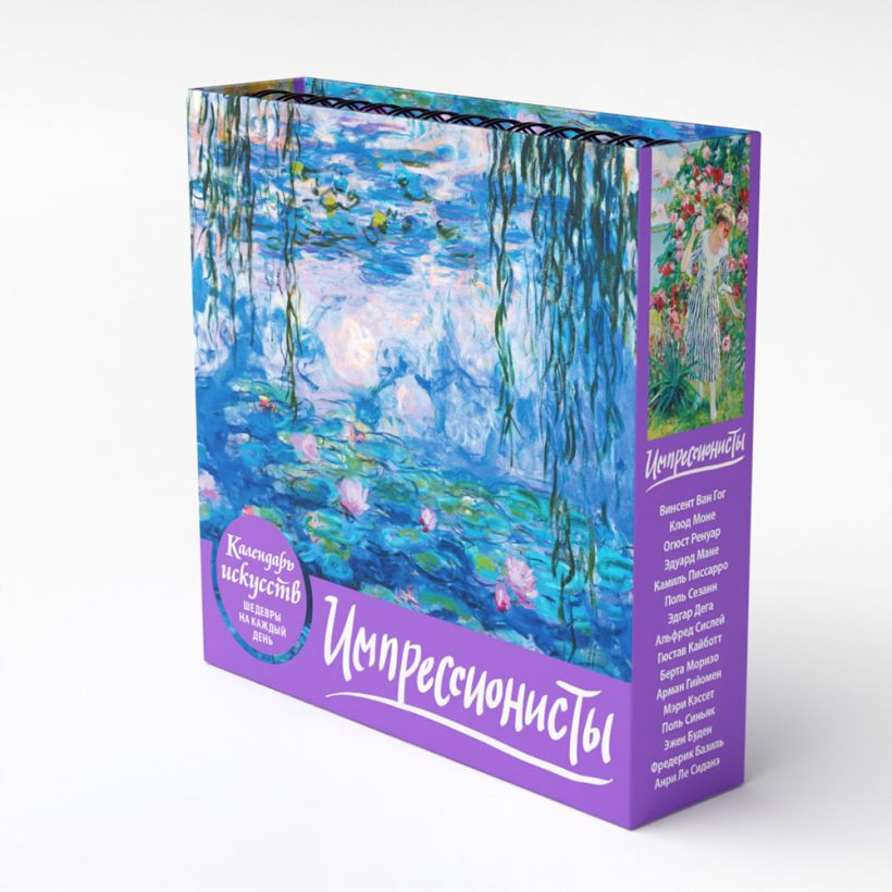 Вечный календарь «Импрессионисты» из серии «Шедевры на каждый день» — это креативная инновация во Вселенной искусства. Календарь объединяет в себе достоинства художественного альбома, картинной галереи и путеводителя по изобразительному искусству.