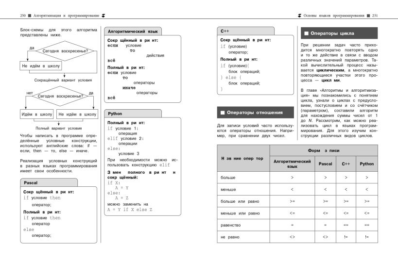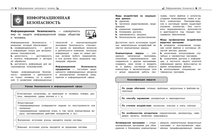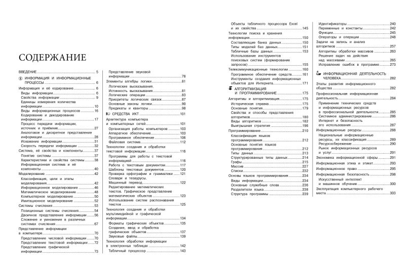 Информация представлена в максимально удобной и эффективной для изучения и запоминания форме — в схемах и таблицах, что обеспечит плодотворную и быструю подготовку к урокам, контрольным и различным экзаменам. В книге можно найти все основные разделы предмета: «Информация и информационные процессы», «Средства ИКТ», «Алгоритмизация и программирование», «Информационная деятельность человека».