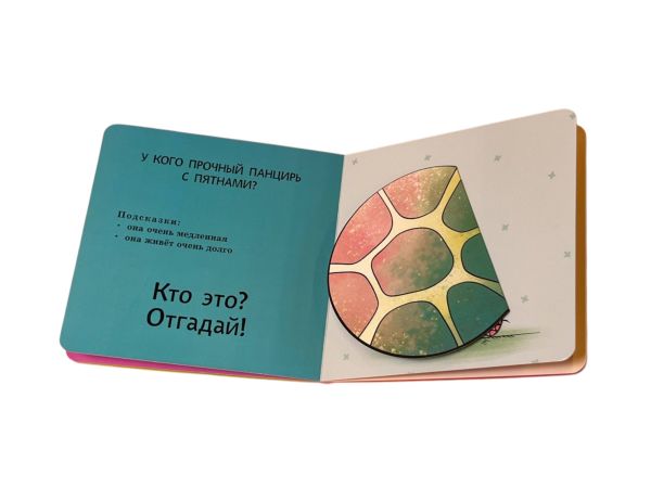 Интерактивная книга-загадка для малышей! Загляните под объёмные элементы — крылья, ушки или лапки — и познакомьтесь с обитателями животного мира! Эта красочно оформленная книжка-картинка превращает чтение в увлекательную игру: малыш может сам открыть створку, чтобы узнать верный ответ на загадку и увидеть, кто же прячется на страничке. А это… слон, черепаха, лев и другие интересные животные!