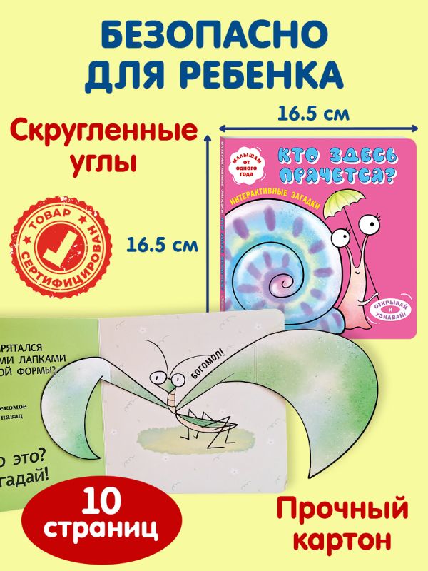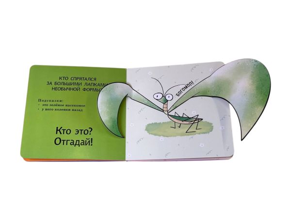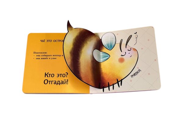 Интерактивная книга-загадка для малышей! Загляните под объёмные элементы — крылья, ушки или лапки — и познакомьтесь с обитателями животного мира! Эта красочно оформленная книжка-картинка превращает чтение в увлекательную игру: малыш может сам открыть створку, чтобы узнать верный ответ на загадку и увидеть, кто же прячется на страничке. А это… пчёлка, улитка, бабочка и другие интересные животные!
