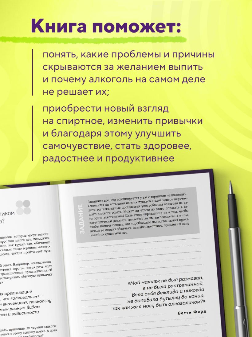 Популяризатор трезвого и осознанного образа жизни Руби Уоррингтон предлагает совершить путешествие, которое поможет кардинально перестроить ваши отношения с алкоголем и испытать все невероятные преимущества трезвого образа жизни. При помощи вопросов, идей и наблюдений, предложенных автором, в течение 100 дней вы будете формировать новый взгляд на спиртное и закреплять полученные знания на практике благодаря специальным упражнениям.