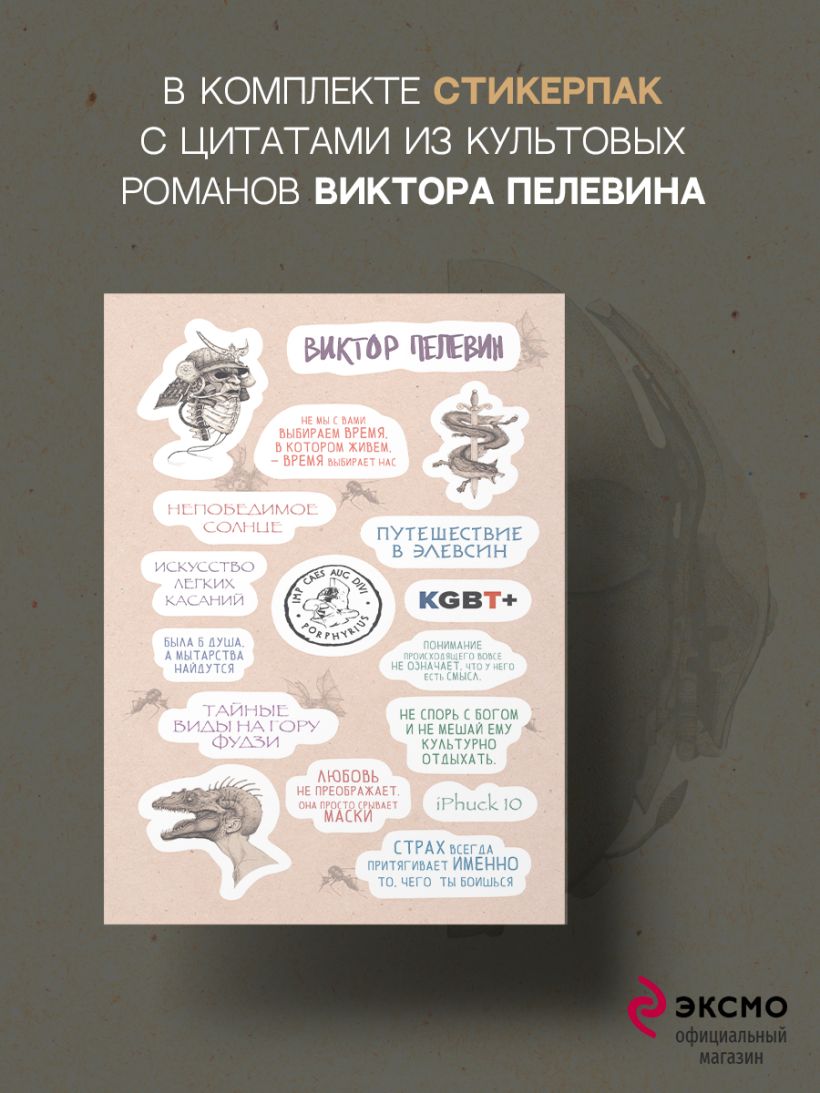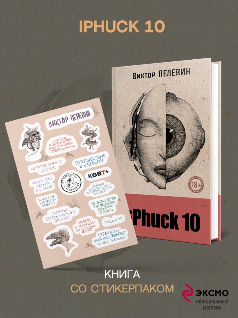 Книга Виктора Пелевина "iPhuck 10" со стикерпаком внутри.