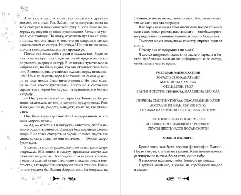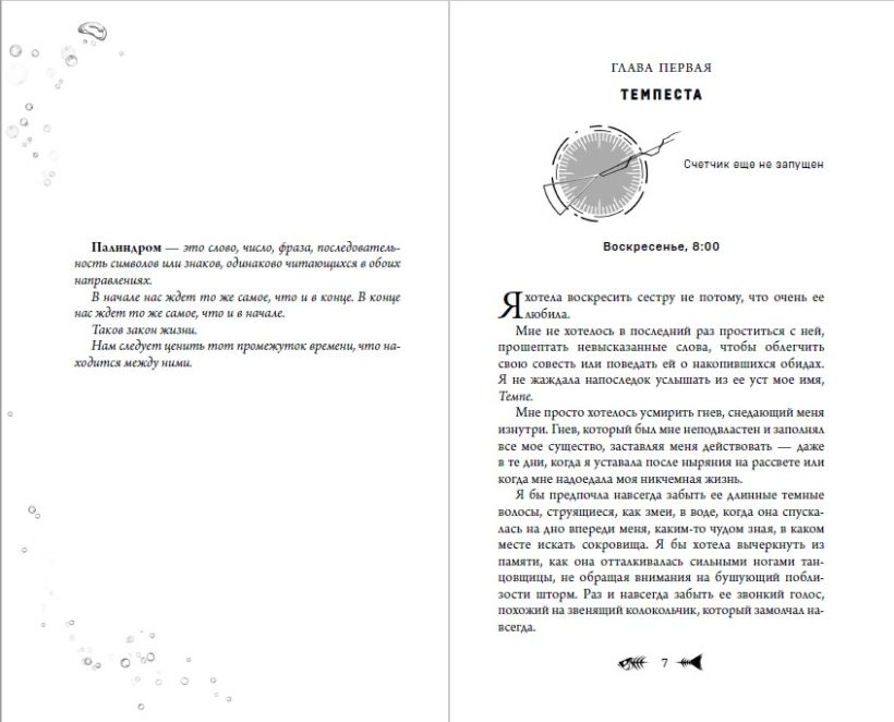 Темпест родилась в мире, который затопило пятьсот лет назад. Теперь руины городов покоятся под водой, а жители Полиндромена регулярно исследуют их в надежде получить вознаграждение. Темпест погружается каждый день, чтобы однажды, ровно на сутки, оживить свою сестру Элизию. Девушка умерла и унесла с собой страшную тайну о роковом дне, когда их родители погибли. Темпест знает — именно Элизия была ответственна за их смерть.