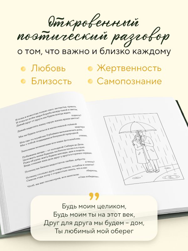 «Оберег» — книга-талисман. Каждое стихотворение в ней — путеводная нить на перекрестке, огонь свечи в темноте, рука, которая держит над пропастью. Эти стихи могут быть и утешением, и откровением, и дерзким вызовом миру — тем самым оберегом, который хранит, вдохновляет и ведет вперед.