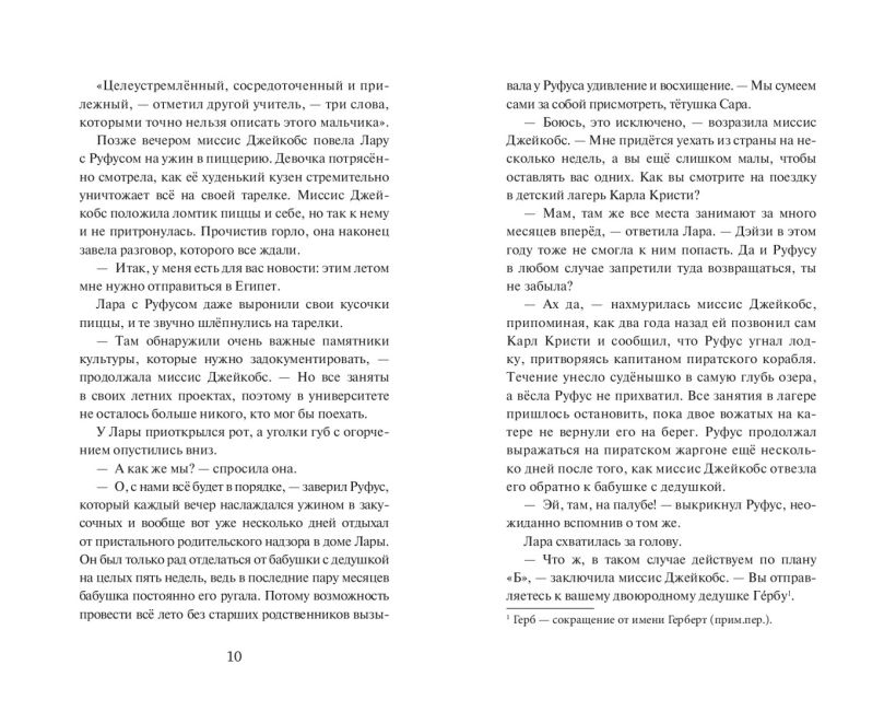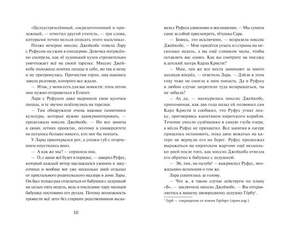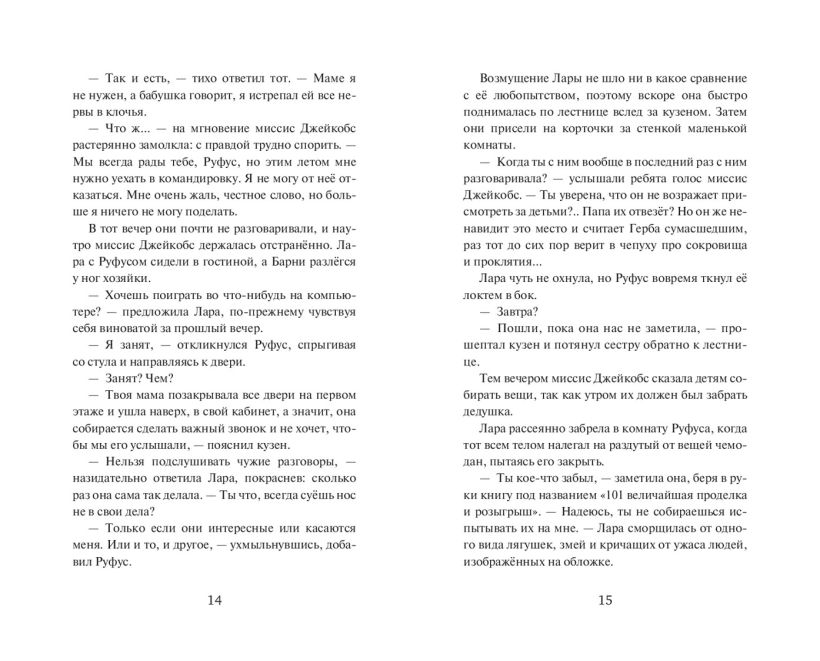 Лара, ее непоседливый кузен Руфус и верный пес Барни проводят лето в загадочном замке двоюродного дедушки. Их ждут: древнее египетское проклятие, таинственные незнакомцы из Британского музея, секретные тоннели и настоящий клад! Смогут ли юные детективы найти все подсказки капитана Джека и добраться до сокровища раньше взрослых?