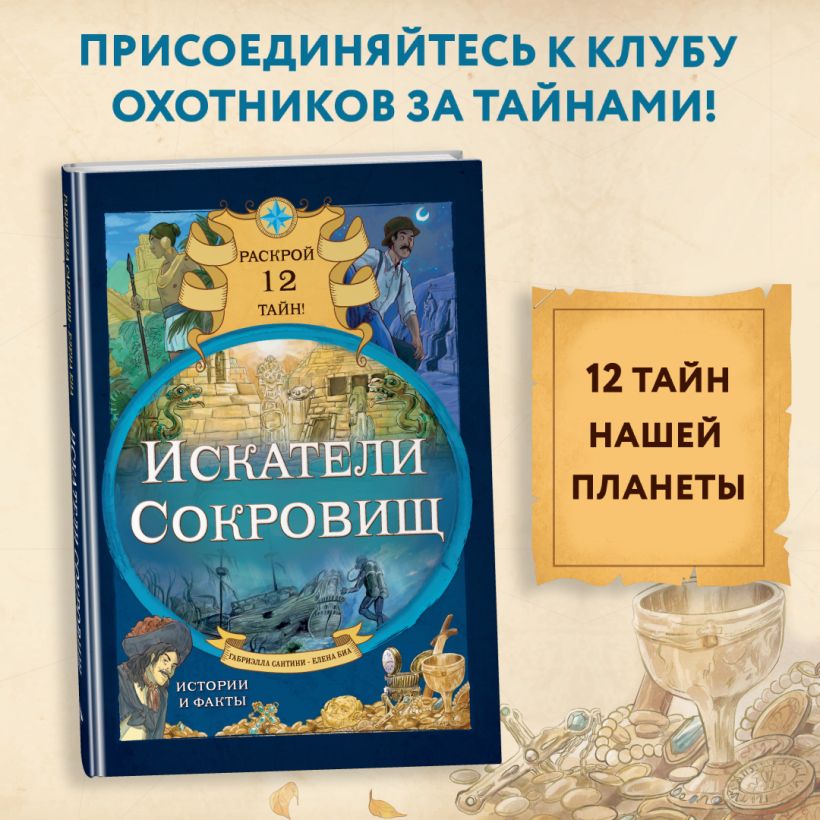 В этой книге 12 увлекательных историй о пиратских кладах, гробницах фараонов и затерянных городах. Присоединяйтесь к клубу охотников за сокровищами! Атлантида, Янтарная комната, Кносский дворец и ещё множество невероятных мест и находок ждут вас на этих страницах. Удивительный мир загадок, большие красочные иллюстрации и интересные факты подарят яркие впечатления как детям, так и взрослым.