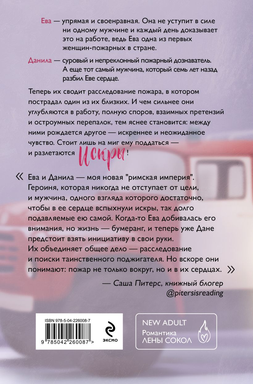 «Ева и Данила — моя новая "римская империя". Героиня, которая никогда не отступает от цели, и мужчина, одного взгляда которого достаточно, чтобы в ее сердце вспыхнули искры, так долго подавляемые ею самой. Когда-то Ева добивалась его внимания, но жизнь — бумеранг, и теперь уже Дане предстоит взять инициативу в свои руки. Их объединяет общее дело — расследование и поиски таинственного поджигателя. Но вскоре они понимают: пожар не только вокруг, но и в их сердцах», — Саша Питерс, книжный блогер, @pitersisreading