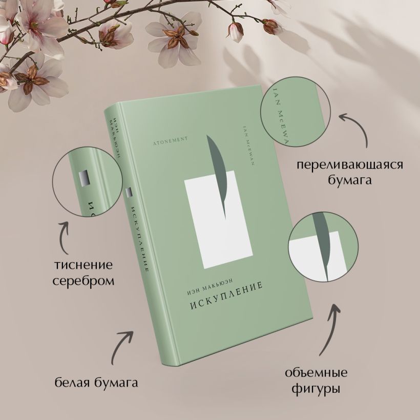 Благодаря металлизированной бумаге создается эффект свечения обложки. Краски мягко и тихо переливаются. На корешке символ книги сделан тиснением серебром, что усиливает эффект внутреннего света. Объемное тиснение фигур создает приятное тактильное ощущение.