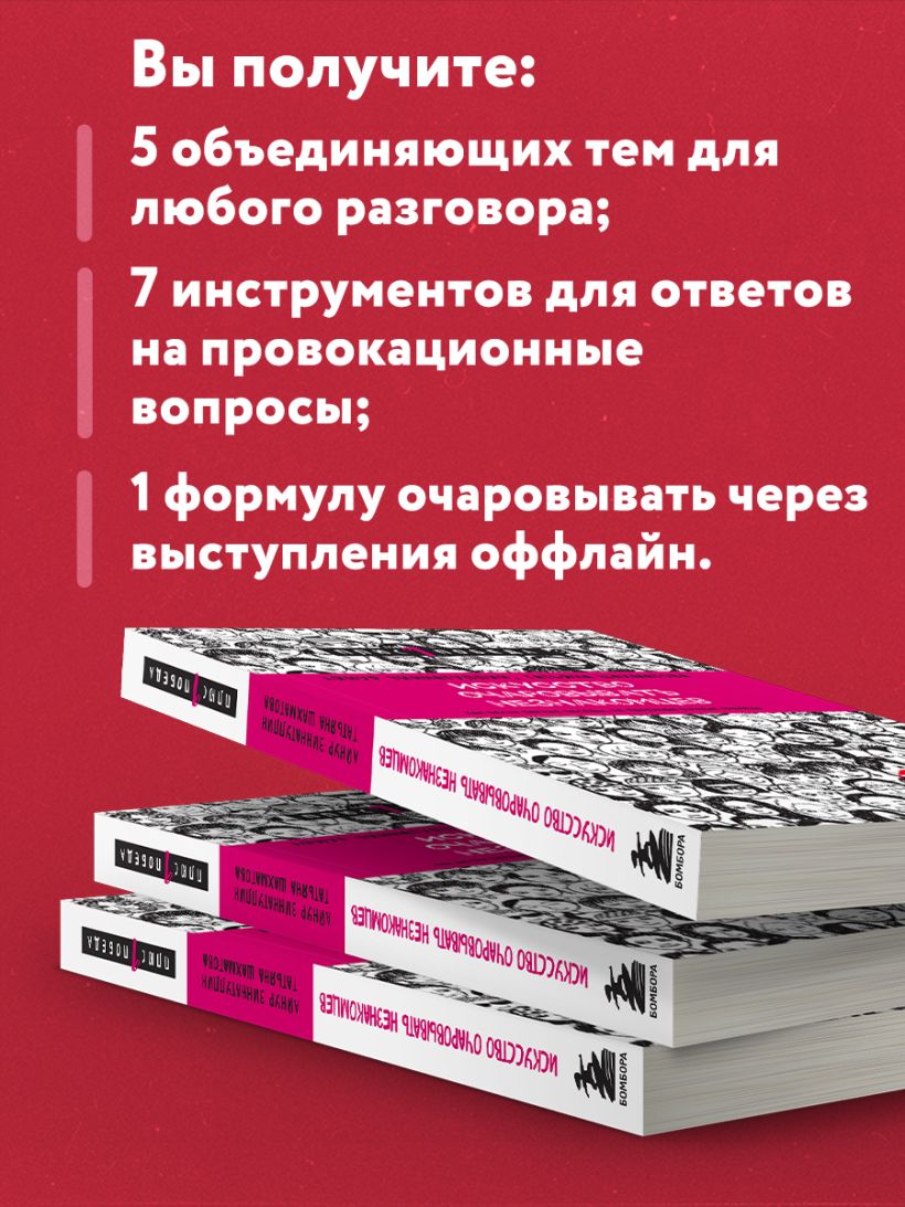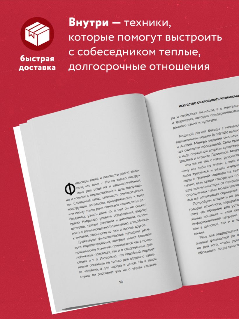 С легкостью очаровывать людей, заводить полезные связи, отключать тумблер страха перед незнакомцами — вот что предлагает эта книга. И не важно, пытаетесь ли вы заинтересовать в себе инвесторов или хотите понравиться родителям девушки. Предложенные авторами техники работают в любых ситуациях. Они не просто позволяют создать контакт с собеседником, но и выстроить с ним теплые, долгосрочные отношения.