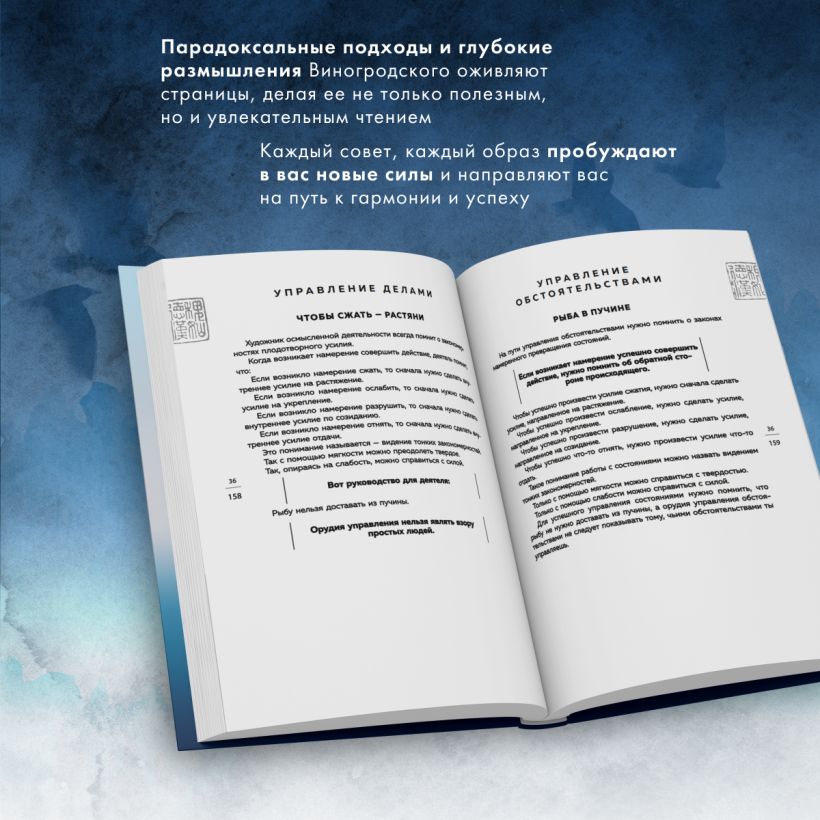 Новое издание книги известного эксперта по Китаю, писателя, художника и переводчика Бронислава Виногродского посвящена структуре управления, а именно получению предсказуемых плодов воздействия на три стороны реальности: на дела, обстоятельства и состояния. Парадоксы здесь соседствуют с ясными указаниями, а глубокая мудрость — с поэтическими образами.