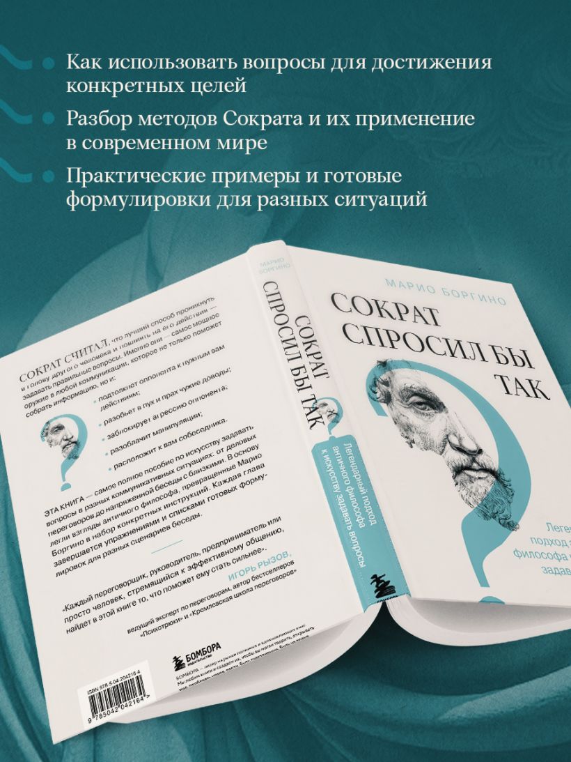 Эта книга — самое полное пособие по искусству задавать вопросы в разных коммуникативных ситуациях. От деловых переговоров до напряженной беседы с близким человеком. В основу легли взгляды античного философа, превращенные Марио Боргино в набор конкретных инструкций. Каждая глава завершается упражнениями и списками готовых формулировок для разных сценариев беседы.
