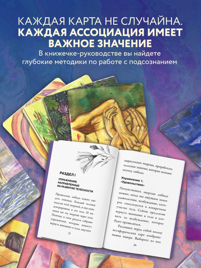 Упражнения для работы с этой колодой разделены на две части: телесный опыт, изучение тела и развитие творческого потенциала.