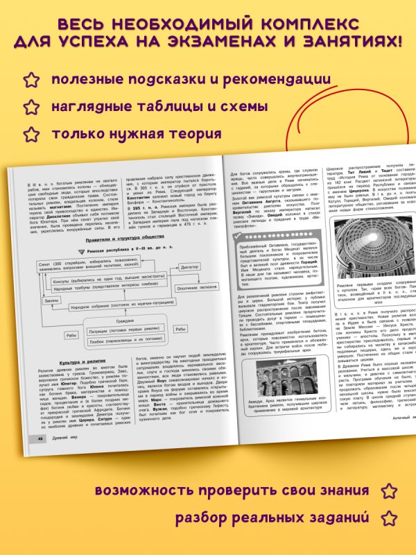 Справочник по истории в наглядных конспектах для учеников 6, 7, 8, 9, 10 и 11 классов превращает изучение каждой темы в увлекательное и познавательное приключение! Книга поможет запоминать и повторять материал на протяжении всего школьного курса. Благодаря наглядной подаче теории с примерами, схемами, а также забавными рисунками, текст становится доступным и интересным. Визуальный подход обеспечивает легкость восприятия и запоминания информации, ведь она оформлена в виде конспектов, словно ученик писал их сам. Всевозможные иллюстрации и места для собственных примеров и примечаний помогут сделать процесс обучения максимально простым и приятным! А при желании можно взять маркеры и сделать свой конспект еще более уникальным и персонализированным! • Все темы школьного курса. • Доступная подача материала. • Наглядные схемы и таблицы. • Множество забавных картинок. • Место для ваших записей и собственных рисунков. Погрузитесь в увлекательный мир истории вместе с наглядным справочником для подростков и почувствуйте, как знания становятся ближе, а учеба лучше! Книжка поможет подготовиться к ОГЭ, ЕГЭ и другим экзаменам 2026. Также пособие будет полезно для занятий родителей с детьми. Автор Мария Селиверстова — опытный репетитор, основатель онлайн-школы «История и котики», ведущая популярного блога про историю и подготовку к экзаменам (общее число подписчиков свыше 130 000!).