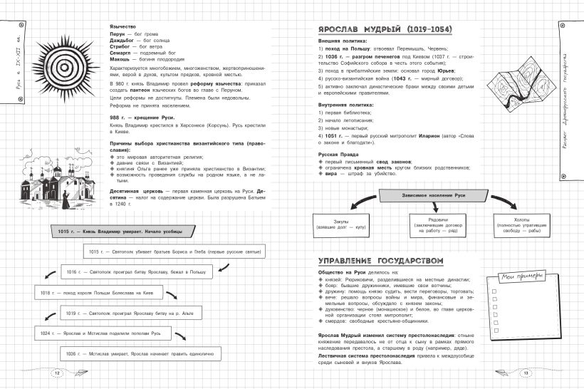 Справочник по истории в наглядных конспектах для учеников 6, 7, 8, 9, 10 и 11 классов превращает изучение каждой темы в увлекательное и познавательное приключение! Книга поможет запоминать и повторять материал на протяжении всего школьного курса.