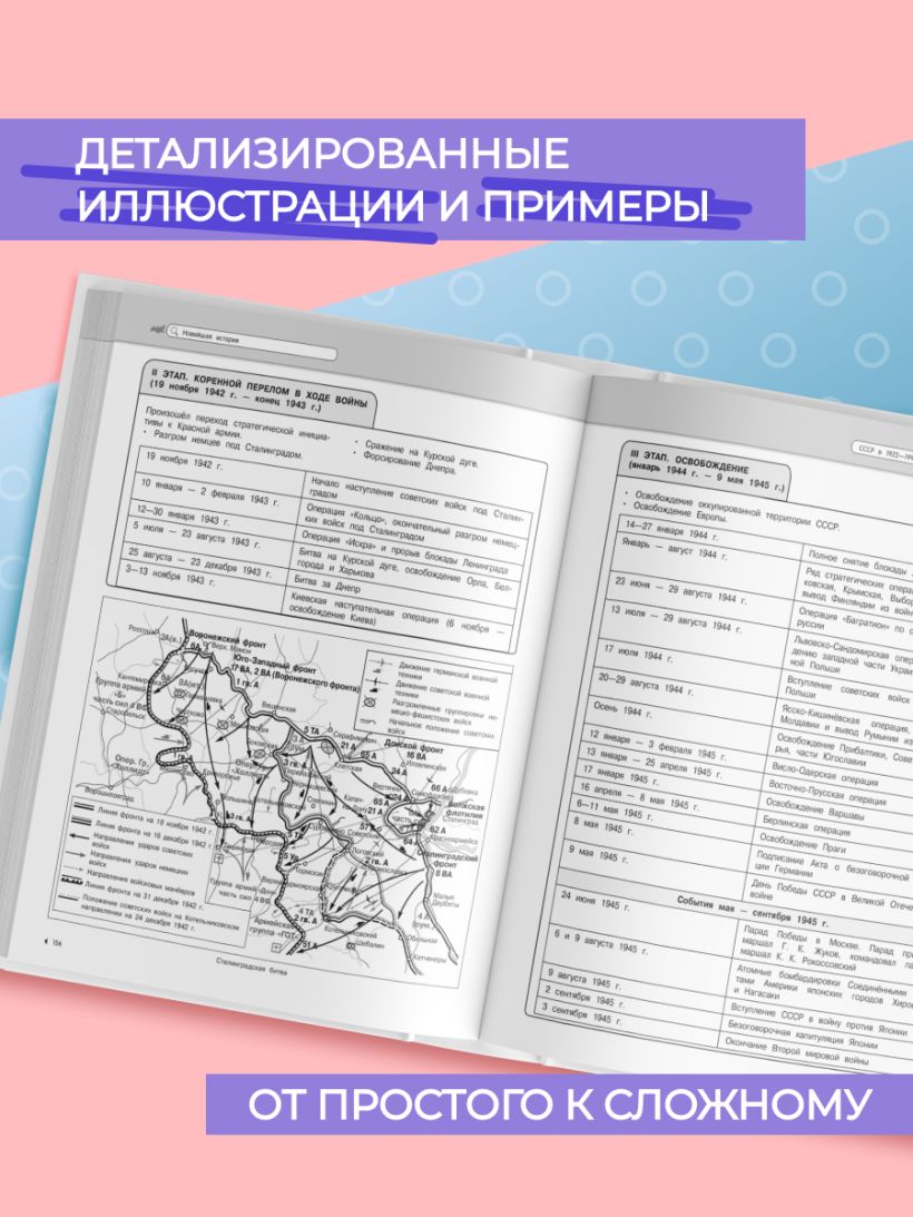 В громоздких учебниках порой бывает сложно найти ответ на какой-то конкретный вопрос. А в данном издании представлена действительно нужная и систематизированная информация, материал изложен последовательно, от простого к сложному, дополняется иллюстрациями, примерами, наглядными схемами и таблицами. В этой книжке для школьников можно найти все основные разделы предмета: «Древность и средневековье», «Новое время», «Новейшая история».