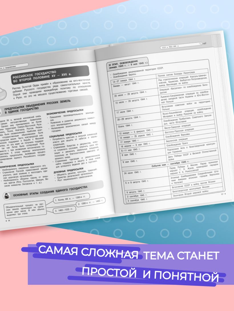 Карманный справочник по истории содержит все темы, проверяемые ЕГЭ-2026 и ОГЭ-2026. Суперкомпактный формат, который помещается на ладони, даст возможность повторить необходимый материал в любое время в любом месте. Информация за 6, 7, 8, 9, 10 и 11 классы школьной программы структурирована и представлена понятным языком. Вы быстро найдёте ответы на все интересующие вас вопросы по разделам: • «Русь в IX—XII вв.» • «Раздробленность и формирование единого государства» • «Российское царство» • «Начало империи. XVIII в.» • «Российская империя в XIX в.» • «Первая половина XX в.» • «Послевоенное развитие СССР» • «Новая Россия» Пособие поможет в подготовке к ЕГЭ, ОГЭ и ВПР, а также урокам, контрольным и самостоятельным работам и другим экзаменам. Книгу удобно брать с собой и использовать при необходимости. Шпаргалка выручит вас в моменты, когда будет так нужна! Успех в образовании доступен всем! Автор: Мария Селиверстова — опытный репетитор, основатель онлайн-школы «История и котики», ведущая популярного блога про историю и подготовку к экзаменам (общее число подписчиков свыше 130 000!).