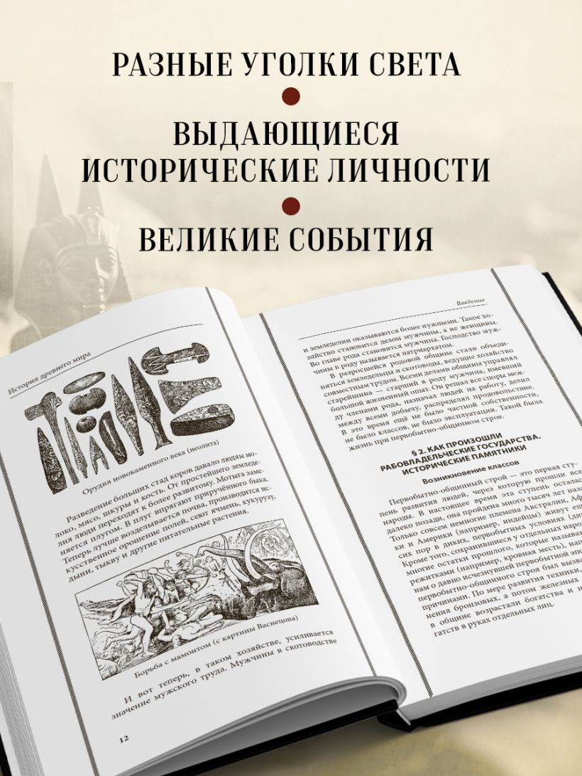 Эта книга — проводник в мир великих цивилизаций, где каждый параграф — это история, которую хочется читать. Страницы оживают благодаря яркому доступному изложению ключевых исторических событий. Иллюстрации, удобная структура и логичная хронология помогают легко усваивать материал. Вас ждет знакомство с Сократом, Платоном, Александром Македонским, Спартаком и другими выдающимися историческими личностями. Отлично подойдет для школьников, родителей и всех, кто хочет лучше понять истоки человечества. Эта книга поможет не просто выучить даты и события, а осмыслить причины, связи и последствия.
