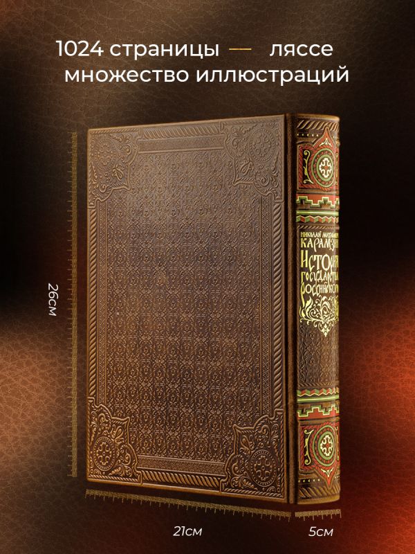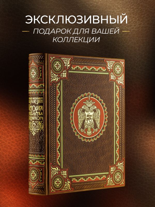 История государства Российского Николая Карамзина. Книга в коллекционном кожаном переплете ручной работы с окрашенным обрезом и многоцветным тиснением