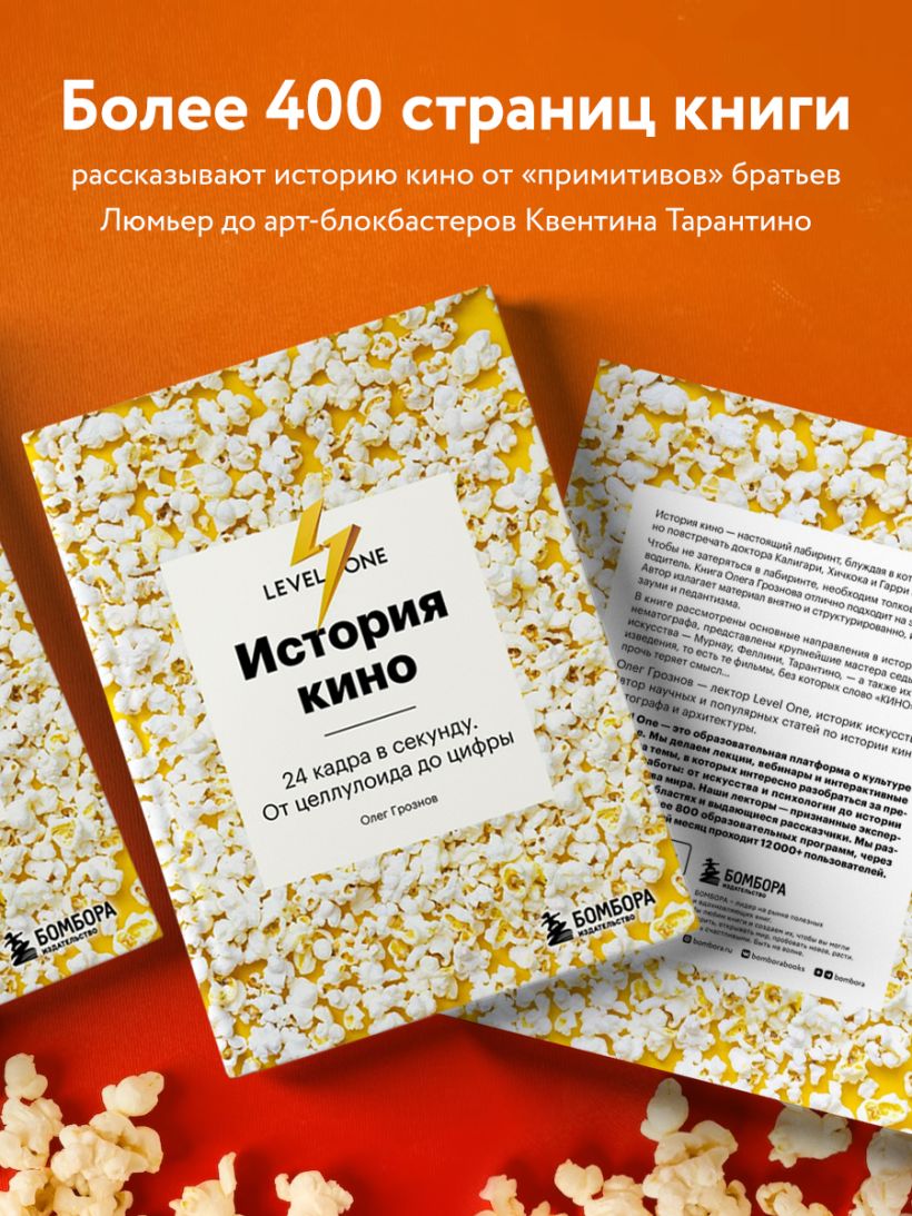 В книге «История кино. 24 кадра в секунду. От целлулоида до цифры» Олег Грознов, киновед и лектор Level One, расскажет о кинематографе самое интересное — как зародилось самое зрелищное из искусств, в чем секреты мастерства великих режиссеров и актеров, как различаются жанры и направления кино ХХ века и в чем секрет культовых фильмов от «Кабинета доктора Калигари» до вселенной Марвел.