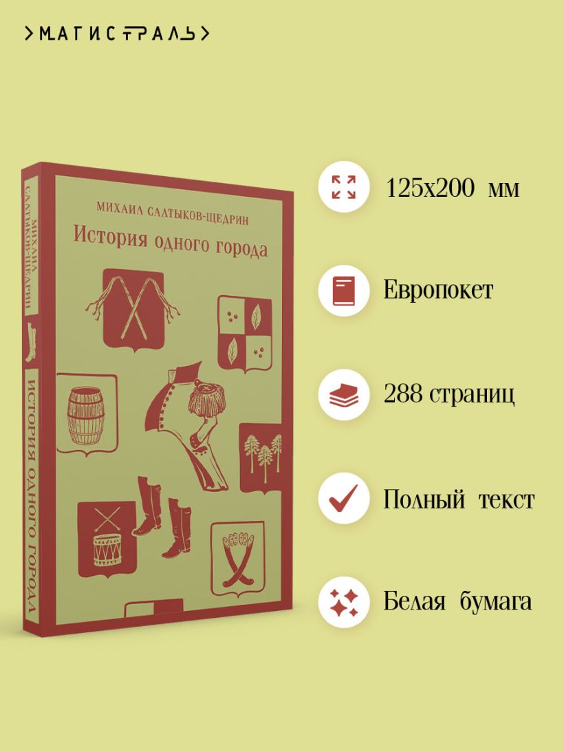 Летопись города Глупова, в котором у одного градоначальника вместо мозга приборчик с записанными скриптами, а у другого вообще голова фарширована трюфелями. При этом третий пишет устав «о нестеснении градоначальников законами», а четвертый мечтает сделать одинаковые дома для одинаковых людей. Фантастика, скажете вы? Не совсем, скорее гротеск. Такой прием, который, как увеличительное стекло со встроенным фонариком, помогает автору подсветить — а читателю увидеть — главное. Михаил Евграфович Салтыков-Щедрин, знавший жизнь в столице и провинции со всех сторон, не фантазировал, а писал своих персонажей с натуры. Не только градоначальников, но и жителей города Глупова. Кстати, что же делают последние, пока чудят первые? Узнаете в книге.
