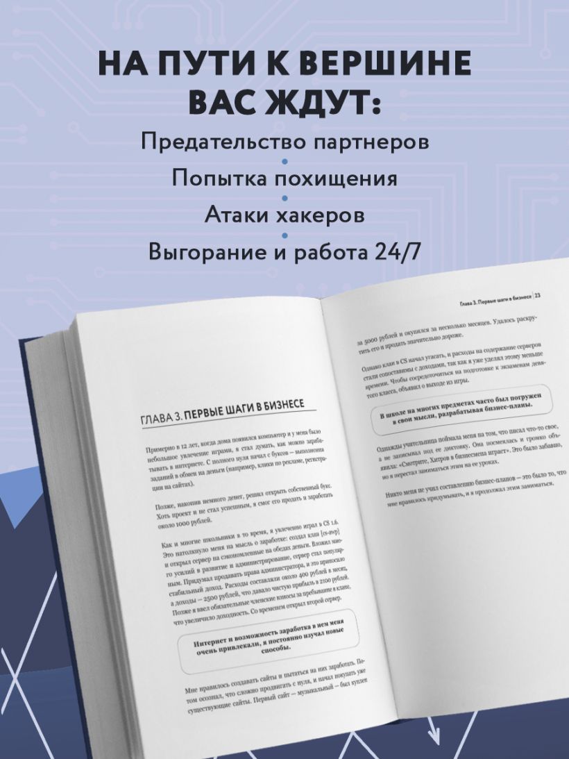 Это не глянцевая сказка о внезапном успехе, а честная «исповедь» о том, каким на самом деле бывает путь, чтобы добиться успеха. Особенное впечатление произвели разделы, посвященные юности автора. Как школьнику пришлось столкнуться с первыми испытаниями бизнеса. Именно благодаря таким рассказам начинаешь осознавать, что любая победа требует мужества и умения преодолевать трудности.