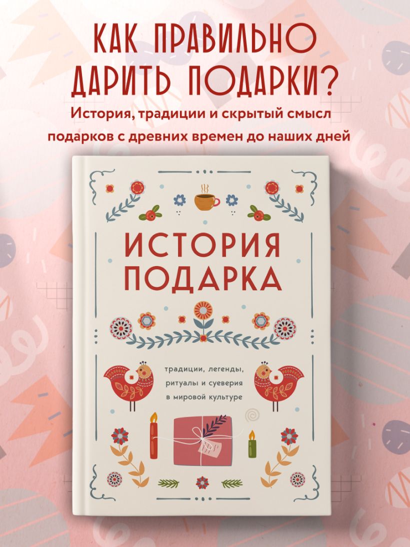 Благодаря этой книге вы начнете разбираться в символике разных подарков и узнаете факты, о которых раньше даже не догадывались. Вам откроется удивительная история подношений: древние обряды, ритуалы, увлекательные мифы, приметы, значимость политических даров. Эстетичные и красочные фотографии погрузят вас в атмосферу каждого праздника, а множество ярких примеров вдохновит на оригинальные подарки: как не захотеть вручить близкому соболиное манто со шлейфом длиной в полкилометра после прочтения легенды о французском короле Людовике XVI?