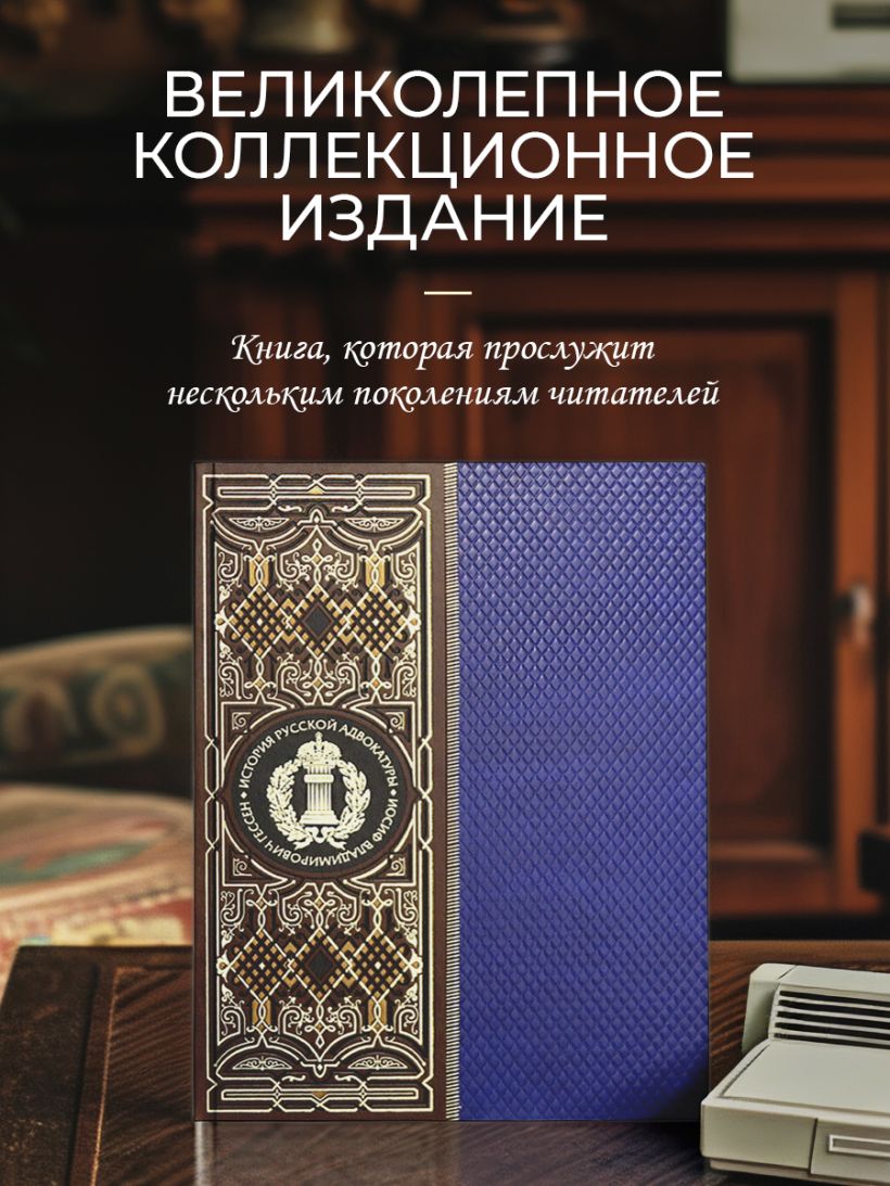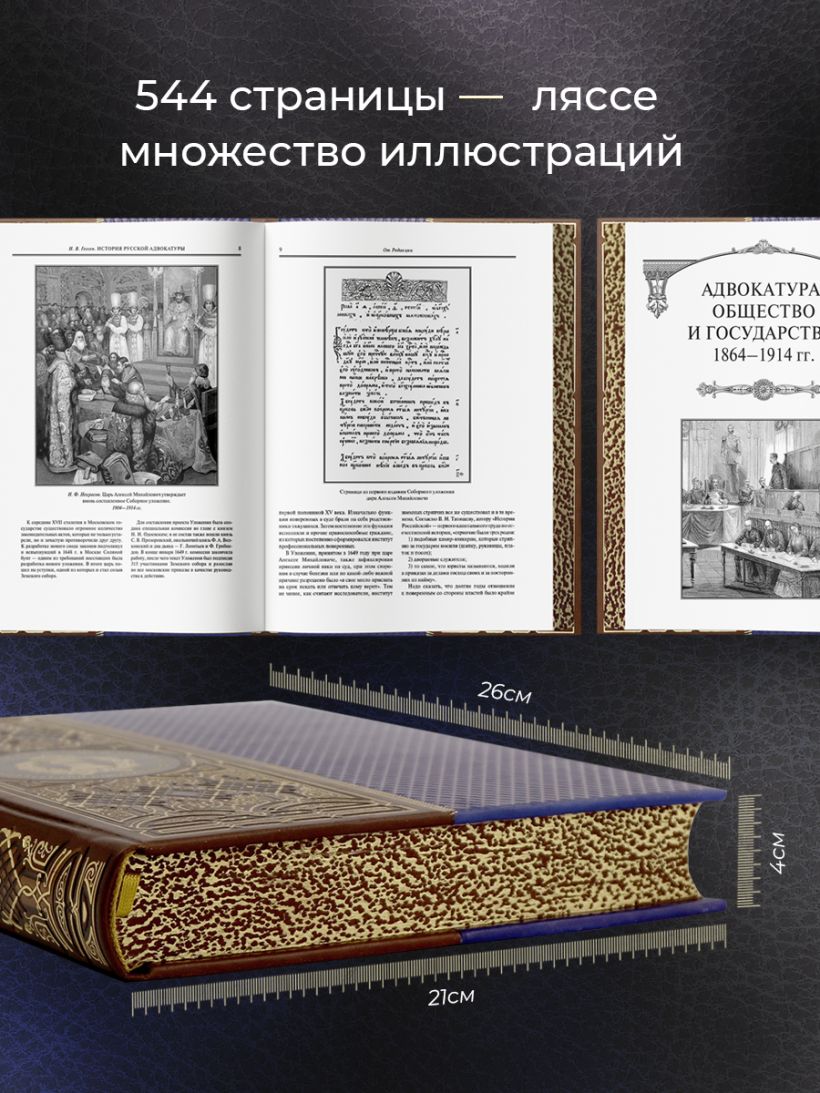 История русской адвокатуры. Книга в коллекционном кожаном инкрустированном переплете ручной работы с окрашенным и золоченым обрезом и многоцветным тиснением. Коричневая.