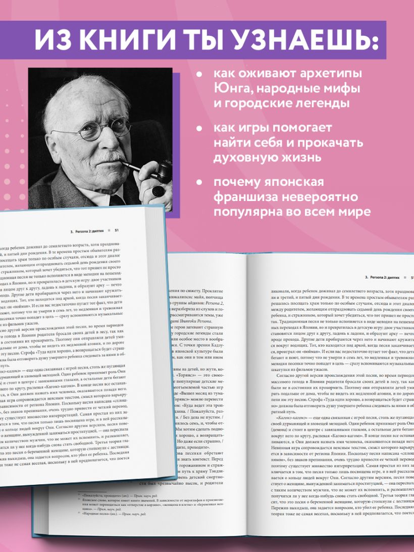 За почти 30-летнюю историю Persona превратилась из небольшого спин-оффа про подростков в один из непотопляемых флагманов своего жанра. Как до этого дошло и почему — можно найти в этой книге, окунувшись не только в историю создания, но и пройдя философский экскурс, попутно углубляясь в сюжетные детали, взятые из разных адаптаций оригинальных игр (манги, аудиопьес и аниме)». — Gaforga, VK-паблик про японские игры