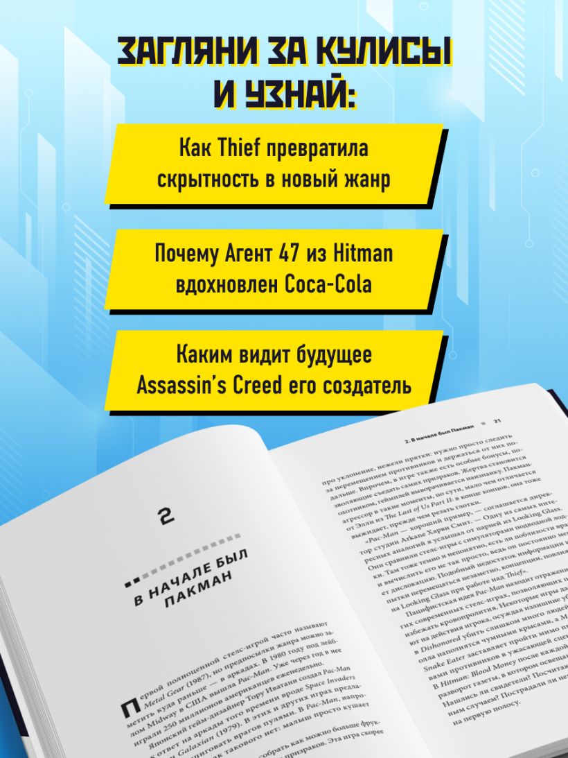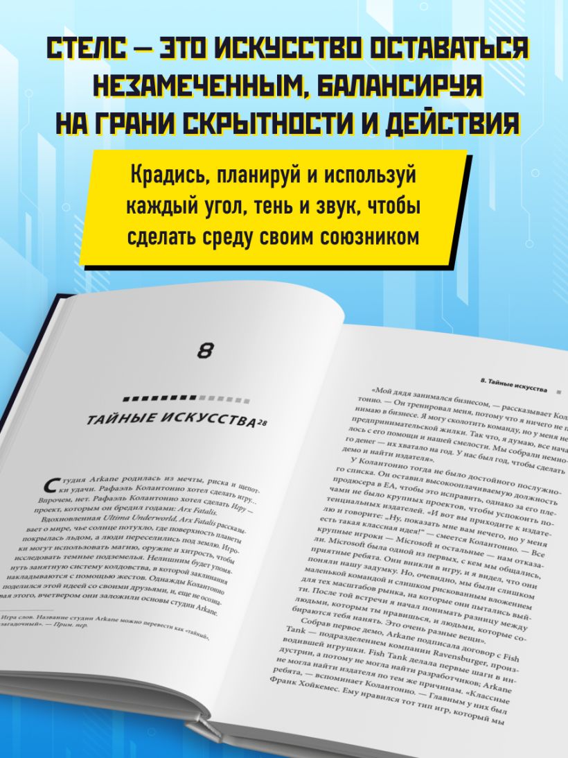 Перед вами книга, основанная на более чем дюжине интервью из первых рук. Она расскажет об основных играх, определяющих жанр стелс: Metal Gear Solid, Thief, Deus Ex, Dishonored, Assassin’s Creed, Hitman, Splinter Cell, Prey, The Last of Us Part II и других. Вас ждут интервью с инсайдерами о трудностях разработки, внутренних конфликтах, об изменениях в направлении, а также о причинах и задачах, стоящих за конкретными решениями и механиками.
