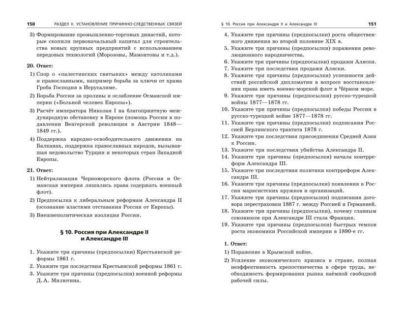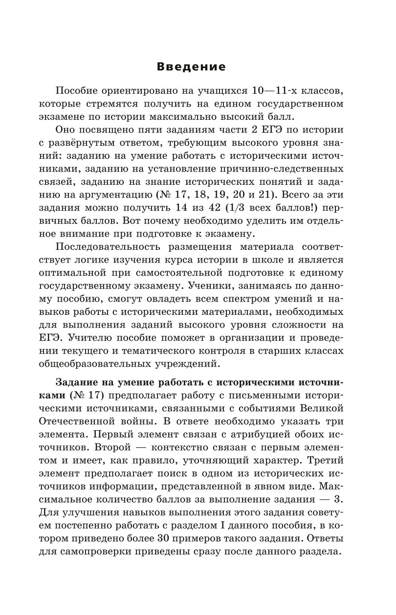 Книга поможет подготовиться к самым сложным заданиям на ЕГЭ по истории, за которые можно получить максимальное количество баллов (14 из 42 первичных). Приводится обширный тренировочный комплекс, нацеленный на совершенствование навыков выполнения заданий с развёрнутым ответом: 32 задания на анализ исторических источников по Великой Отечественной войне; 305 тематических заданий на установление причинно-следственных связей, охватывающих курс истории с древнейших времён до современности; 302 задания на работу с историческими понятиями, сгруппированные в хронологической последовательности; 33 задания на сравнение исторических событий, процессов, явлений; 77 заданий на аргументацию точки зрения с элементом всеобщей истории.