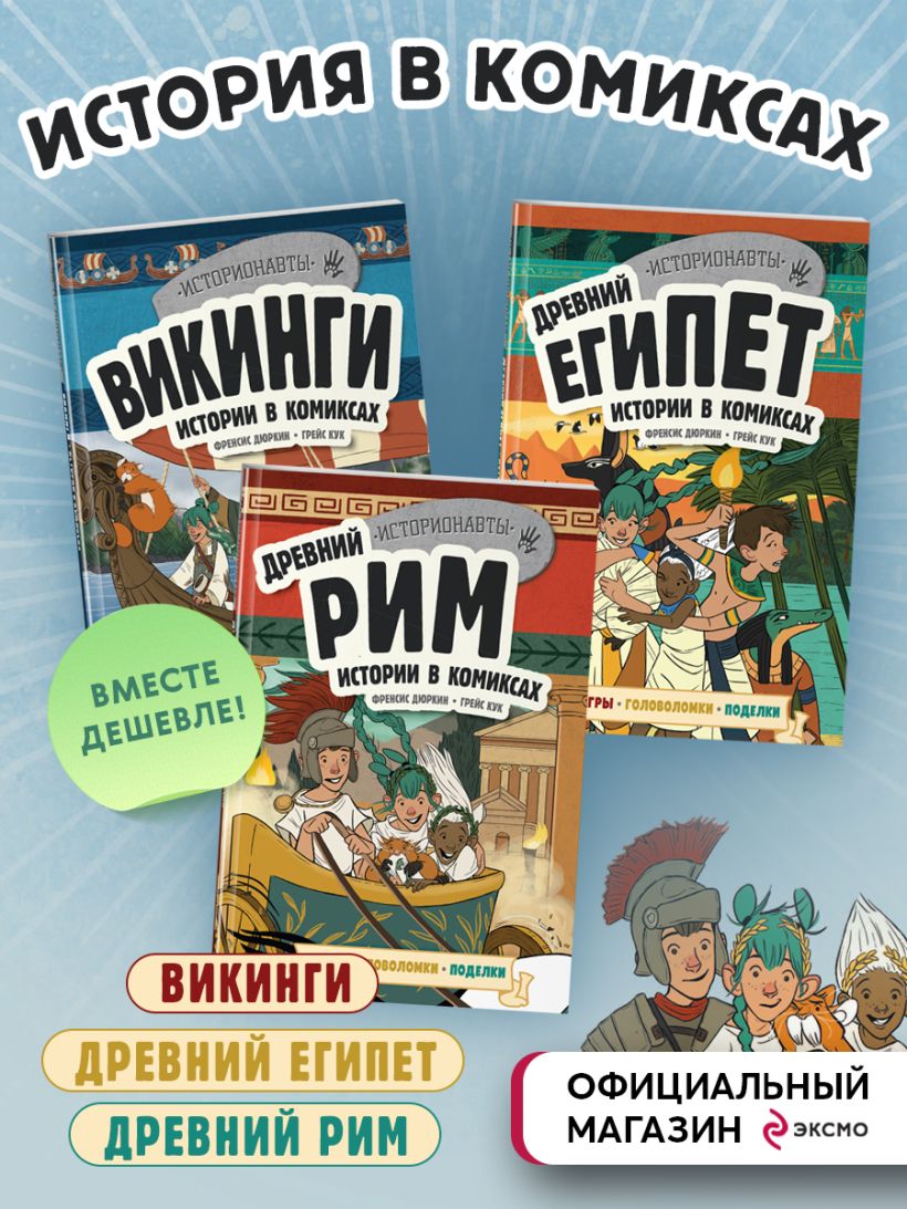 Комплект "История в комиксах. 3 в 1! Увлекательное путешествие в прошлое в картинках и играх!"