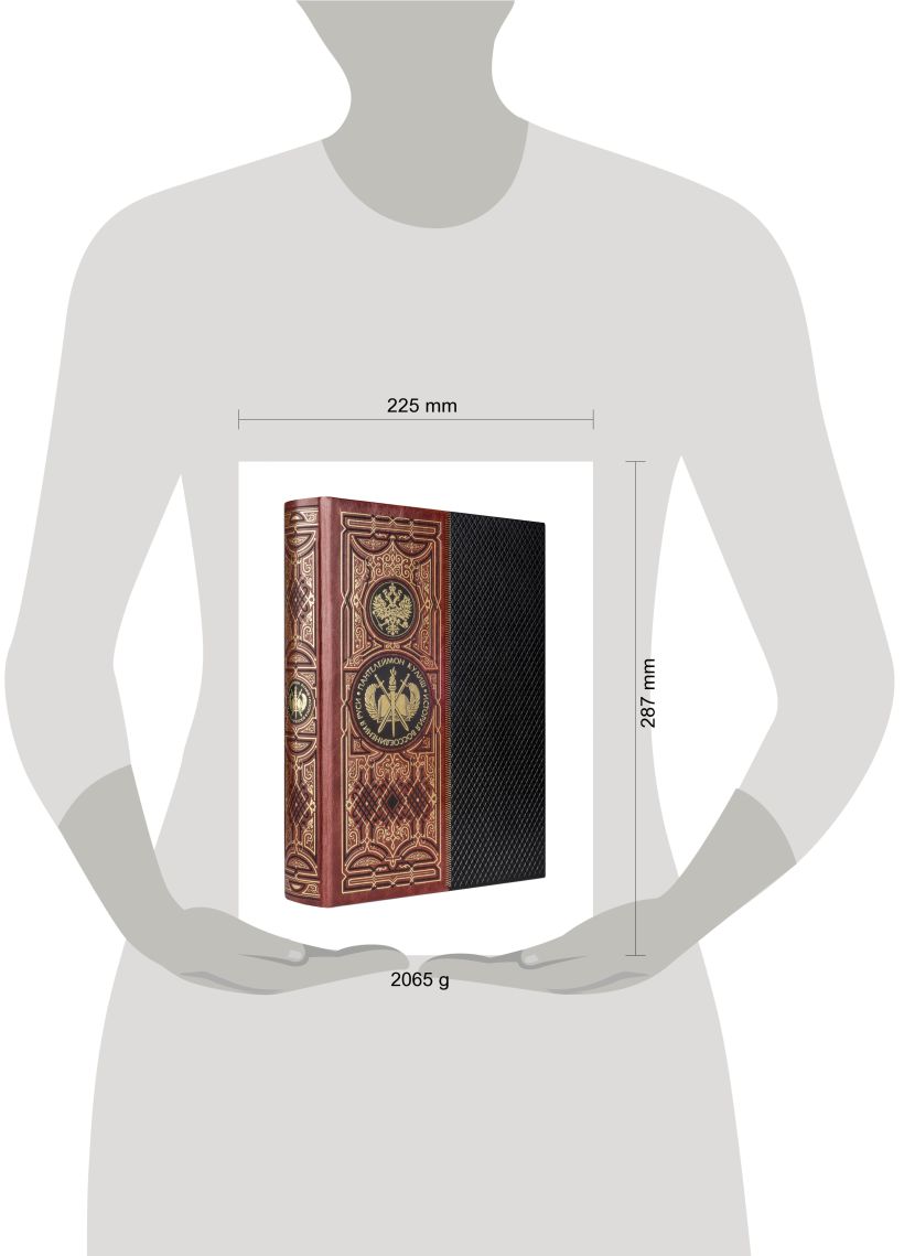 Книга в коллекционном инкрустированном переплёте. Переплет изготовлен их двух видов натуральной кожи по технологии 19 века и украшен сплошным тончайшим тиснением, в полном соответствии с лучшими образцами переплетов европейских мастеров. В оформлении переплета использованы универсальные растительно-геометрические плетёные орнаменты, благодаря им книга будет отлично смотреться на любой книжной полке. Лента для закладывания страниц и каптал, скрепляющий верх и низ объемного тома, изготовлены из шелка. Бумага в книге легкая, матовая, что обеспечивает комфортное чтение даже длительное время, иллюстрации напечатаны на высокобелой мелованной бумаге. Обрез книги вызолочен вручную. Книга помещена в прочный футляр с магнитным замком и шелковой лентой, облегчающей вынимание.