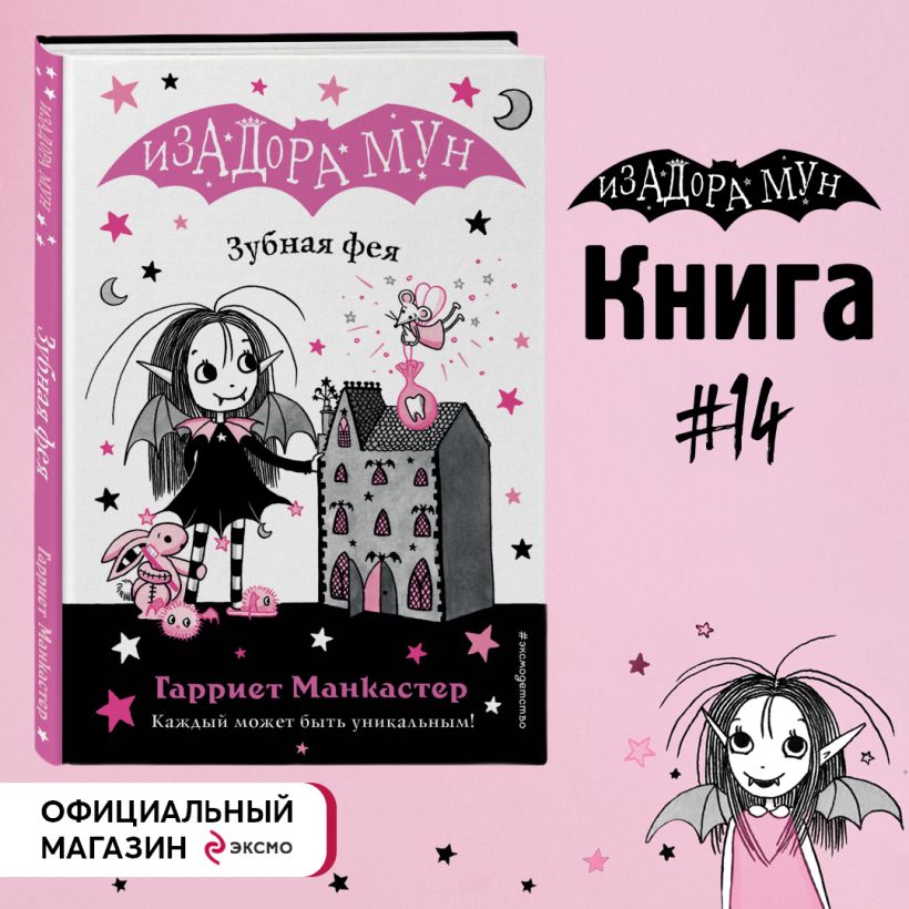 Книги об удивительной Изадоре Мун переведены на 32 языка! Её обожают дети по всему миру! Внутри милые чёрно-розовые иллюстрации. Крупный шрифт, лёгкий слог, интересный сюжет — прекрасно подойдёт для самостоятельного чтения.