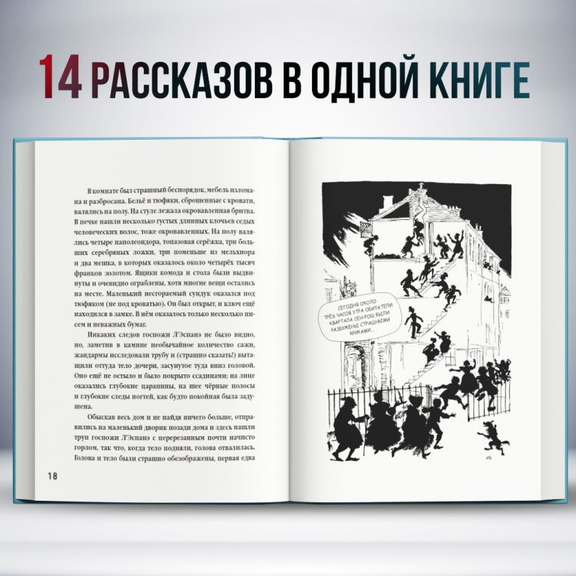 За интригующей, притягивающей глаз обложкой скрыто 14 рассказов американского писателя Эдгара Аллана По. Среди них такие шедевры, как «Убийство на улице Морг», «Золотой жук», «Падение дома Эшер», «Колодец и маятник» и другие.