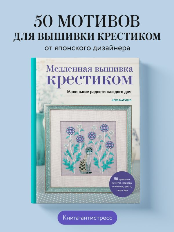 Современная жизнь несется с бешеной скоростью, и иногда так хочется замедлиться, выдохнуть и обратить внимание на то, что нас окружает. Пройтись по осеннему парку, полюбоваться облаками, погладить любимого котика, посидеть с подругой в уютном кафе. Для многих вышивка крестиком — идеальное лекарство от стресса, способ отвлечься от забот и тревог, разгрузить мозг и пару часов наслаждаться сочетаниями цветов и медленным появлением картинки. Если это про вас — то эта книга точно вам нужна!