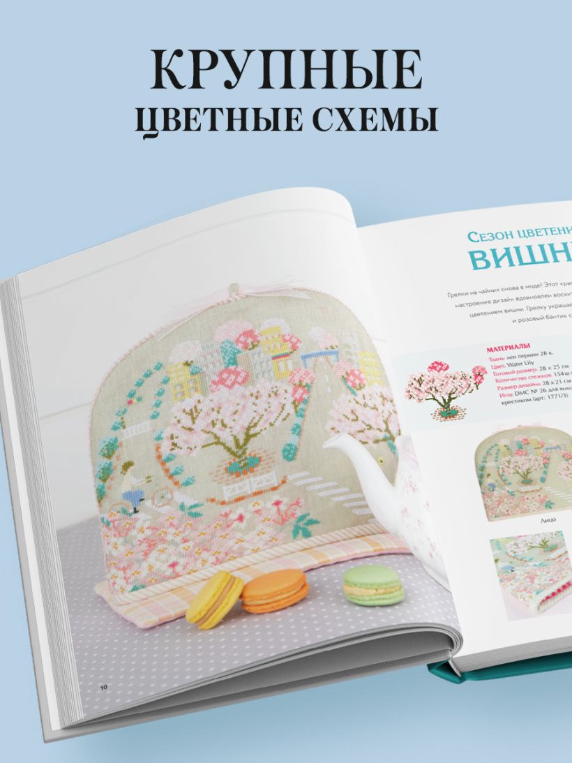 Японский дизайнер Кёко Маруоко вышивает крестиком и создает схемы для вышивки уже почти 30 лет, и предлагает найти вдохновение в самых обыкновенных вещах. Украсьте вышивкой сумки, игольницы, салфетки, шкатулки, картхолдеры, обложки для книг и даже грелку для чайника.